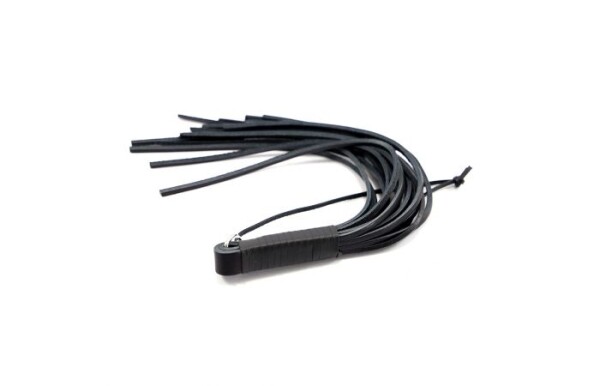 Flogger zweep gemaakt van 3.5 dik leer , met een met leer omwikkeld handvat en een leren polsband.