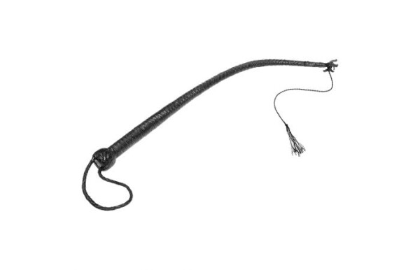 Versterk de intensiteit van je spel met deze indrukwekkende zweep, die kracht en elegantie naadloos combineert. Gemaakt van hoogwaardig zwart leer, voelt deze zweep stevig aan en ligt hij comfortabel in de hand, ideaal voor intensieve speelsessies. De lange leren strengen zorgen voor een krachtige impact, perfect voor wie op zoek is naar een extra dimensie van controle en opwinding.